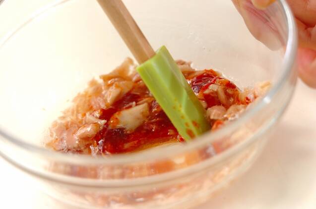 ボウルにツナとコチュジャンをよく混ぜ合わせる。