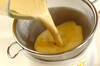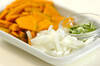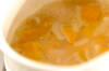 カボチャは種を取り、皮を削ぎ落として薄切りにする。