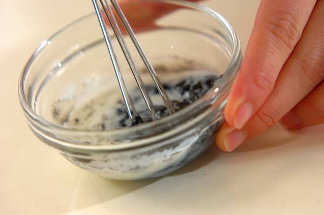 <黒ゴマソース>の材料を混ぜ合わせる。