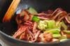 <調味料>の材料を加えて炒め合わせ、器に盛る。