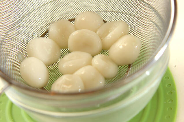 浮き上がってきたら1~2分ゆでて氷水に取り、冷たくなったらザルに上げる。