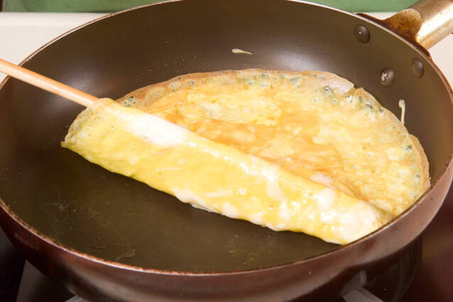 卵は割りほぐし、酒、砂糖、塩を加えてよく混ぜ合わせる。フライパンに薄くサラダ油を引き、薄焼き卵を何枚か作り、冷めれば4cmの長さの細切りにする。