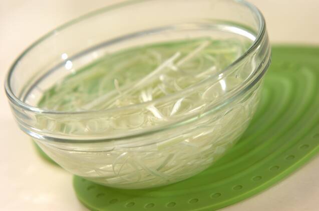 白ネギは芯を除いてせん切りにし、水にさらして水気をきる。