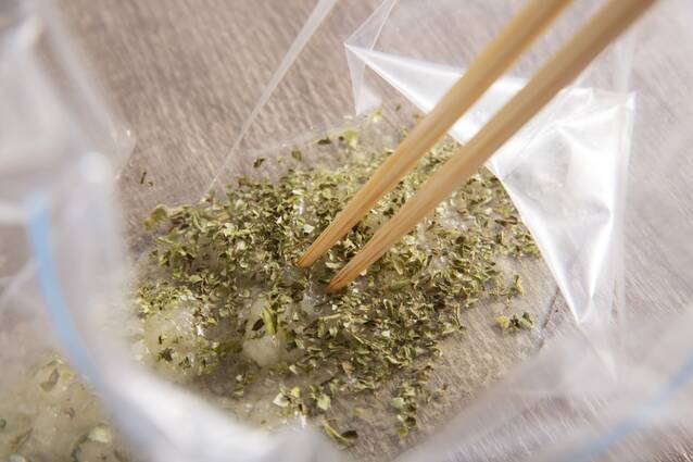 ポリ袋に<漬けだれ>の材料をすべて入れてよく混ぜる。