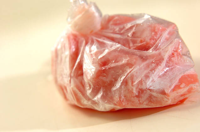スイカは大きめのひとくち大に切り、取れる種は取り除き、抗菌のビニール袋に入れて冷凍する。