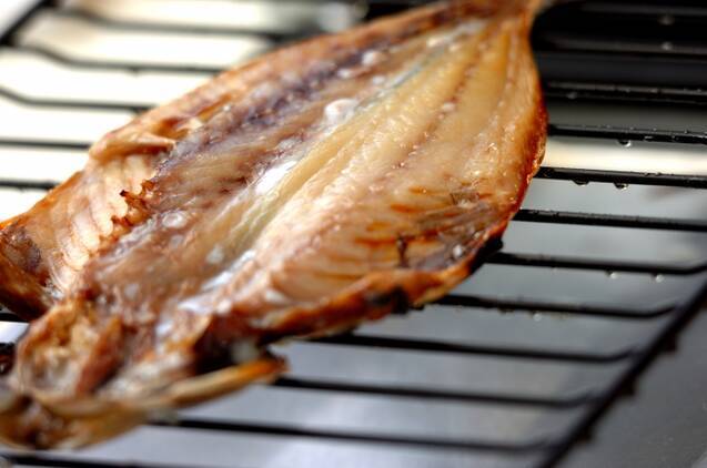 グリルの網に分量外のサラダ油を薄くぬり、アジを並べて焼く。火が通ったら取り出し、粗熱が取れたら身をほぐす。