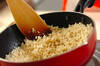 フライパンにゴマ油、ショウガを入れて中火で熱し、香りがたったら高野豆腐を加え、水分が飛んでパラッとするまで炒める。