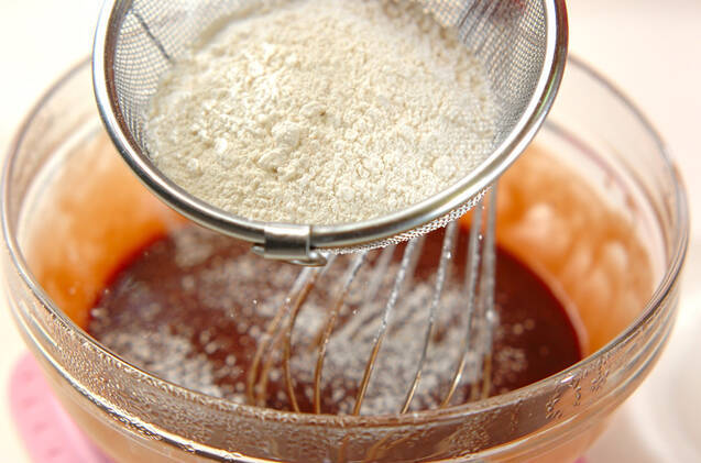 ホットケーキミックスを振るいながら加え、粉っぽさがなくなるまで混ぜ、ココットなどに入れる。