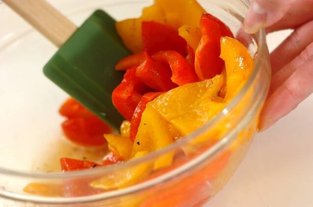 ボウルで<マリネ液>の材料を混ぜ合わせ、パプリカを加えて混ぜ合わせる。冷蔵庫で冷やして味をなじませ、器に盛る。