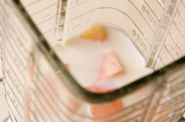 桃、プレーンヨーグルト、牛乳、ハチミツをミキサーに入れ、ピューレ状になるまで撹拌して、氷を入れたグラスに注ぐ。あればミントの葉を飾る。