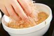 焼き上がればかつお節をのせる。お好みでポン酢を掛けていただく。