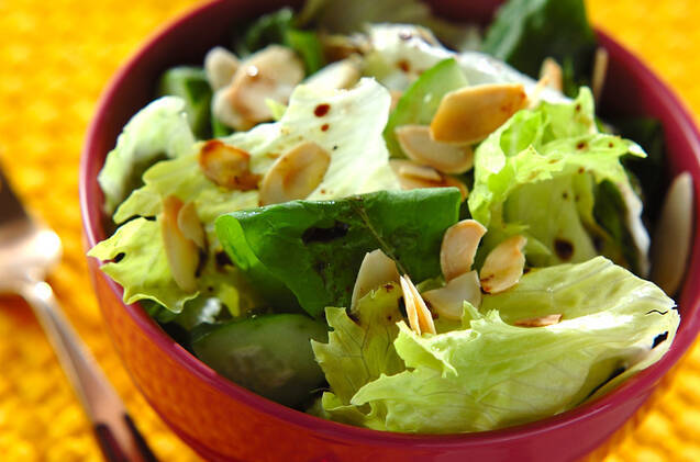 グリーンの野菜を3種使った、ヘルシーサラダ。ドレッシングも手作りで。