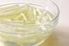 ウド、ゆでタコ足、キュウリを<合わせ酢>を合わせたボウルに入れて和え、器に盛る。