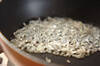 泡がジュワジュワとなってきたら松の実を加え、シュワシュワという軽い音に変わったら火を止め、熱いうちに(1)にかける。