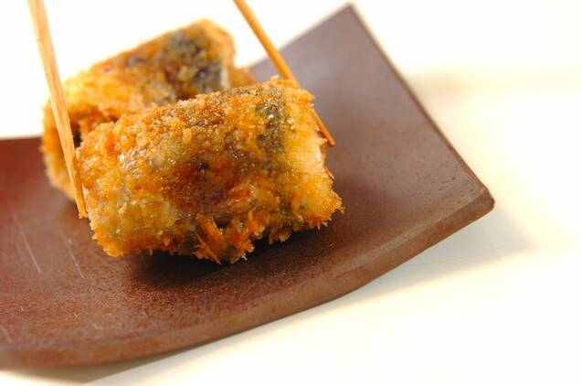 油をきってつま楊枝を引き抜き、皿に盛る。