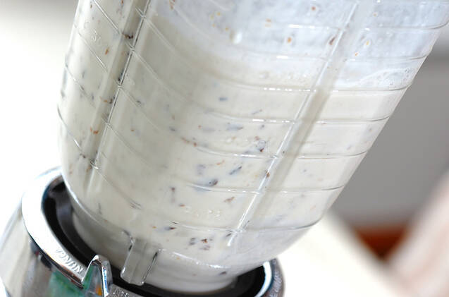 ドライプルーン、ハチミツ、牛乳、ヨーグルトをミキサーに入れ、撹拌する。