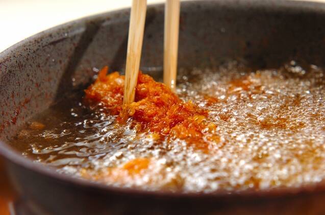 170℃に温めた揚げ油で(2)をカリッと揚げる。器に盛り、お好みでチリパウダーを振り、ケチャップを添える。