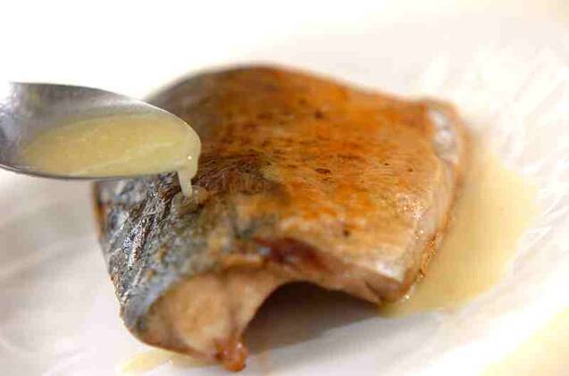 器にサバを盛り、フライパンをサッと拭いて、残りのバター10gを火にかけて溶かし、溶けたら火を止めてレモン汁を加える。器に盛ったサバにかけ、ドライパセリを散らす。