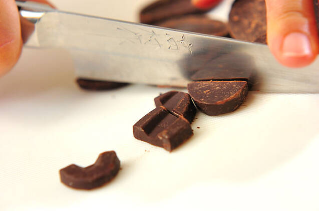 ダークチョコレートは大きめに砕いておく。