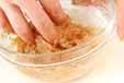 ボウルに片栗粉以外の<合わせ種>の材料を入れ、粘りが出るまで手でよくこね、片栗粉を加えて更にこねる。