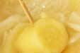再び煮立てば中火にし、サツマイモに竹串がスッと刺さる位まで煮て、牛乳を加えてひと煮立ちさせる。