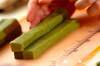 2/3の生地をそれぞれ厚さ1cmにのばし、さらに幅1cmカットして棒状にし、<薄抹茶生地>と<濃抹茶生地>を組み合わせて市松模様にする。