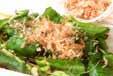 かつおぶし、酒、しょうゆをかけ、全体にまぶしてからめ、器に盛る。