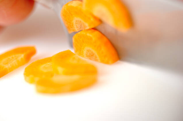 春キャベツはザク切りに、ニンジンは皮をむいて薄い半月切りにする。耐熱ボウルにブロッコリーも合わせてサッと水に通し、ラップをかけて電子レンジで1分30秒~2分加熱し、ザルに上げて冷ます。オーブンを250℃に予熱し始める。