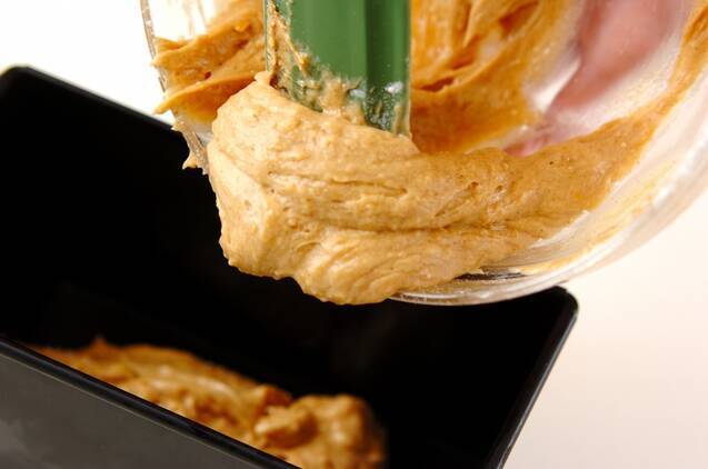分量外のバターをぬったパウンドケーキの型に、(2)を入れて170℃に予熱しておいたオーブンで50分焼く。
