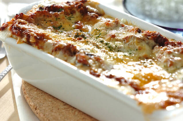 ミートソースとホワイトソースから作る本格ラザニア。季節の野菜を入れてもGOOD!