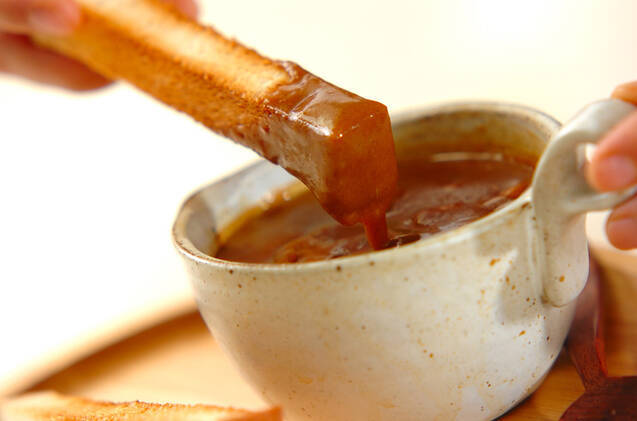 ラップをして電子レンジで2~3分加熱してよく混ぜる。トーストした食パンを添え、食パンにつけて召し上がれ!(ヒント)電子レンジは600Wを使用しています。