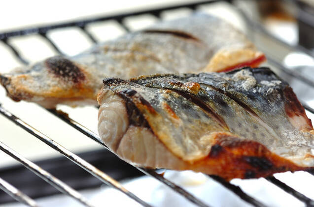 焼き網にサラダ油を薄くぬり、サバの皮を上にしてのせ焼き色が付くまで焼く。