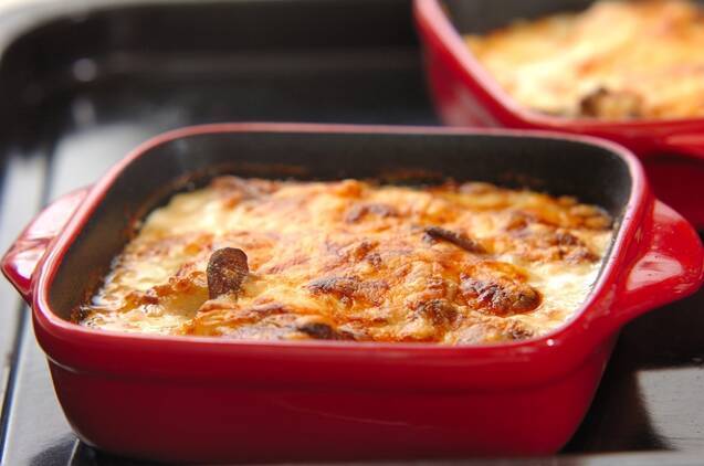 250℃に予熱しておいたオーブンに入れ、こんがりと焼き色がつくまで15~20分焼き、パセリを散らす。