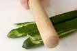 キュウリはすりこぎ等でたたき、食べやすい大きさに割る。種が多い場合はスプーン等で種を取る。