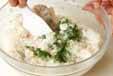 ボウルにご飯、炒めたハムを加えて混ぜ合わせ、更にドライパセリも混ぜ合わせ、8~12等分に分ける。