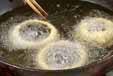 (1)を170℃の揚げ油でカリッと揚げ、油をきり器に盛る。