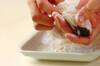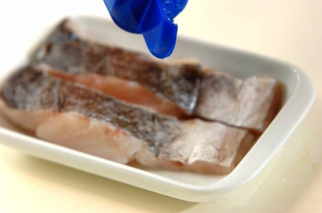 タラはクッキングペーパ―で水気を拭き、塩を少々振って10分置き、浮き出てきた水気を拭き取る。