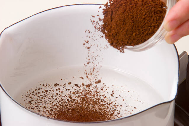 鍋に水、砂糖、インスタントコーヒーを入れて煮溶かす。