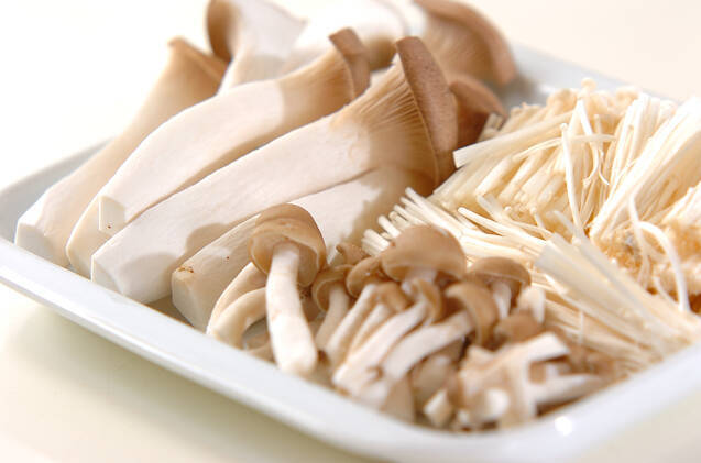 エリンギは縦4等分に切る。エノキ、シメジは根元を切り落として食べやすい大きさにさばく。