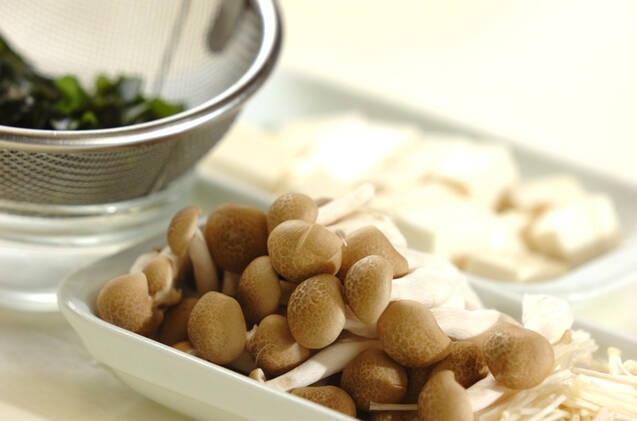 シメジは石づきを切り落とし、小房に分ける。エノキは石づきを切り落とし長さを3等分に切り、根元をほぐす。