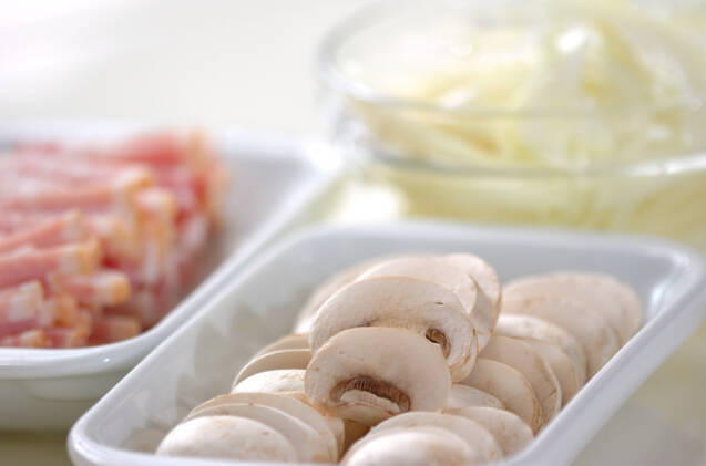 塊ベーコンは3cm長さの、5mm角位に切る。