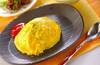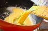 卵2個と牛乳大さじ1をよく混ぜ合わせる。フライパンを弱めの中火で熱し、バター5gを溶かし、卵液を一気に加えてフライパン全体に広げる。菜ばしを全体に動かしてゆっくり火を通し、半熟になったら3にのせ、ドライパセリを散らす。全部で4つ作る。お好みでケチャップを掛けてください。