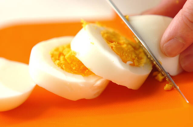 ゆで卵は4等分の輪切りにする。