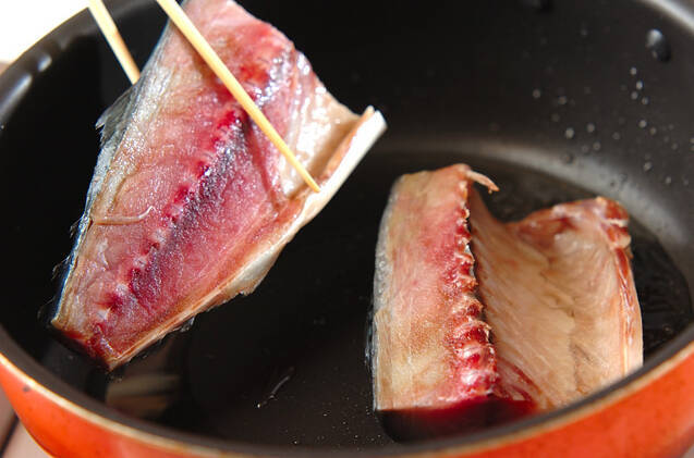 フライパンにサラダ油を強火で熱し、サバの皮側を下にして入れ、焼き色がついたら返して火を弱める。フライパンに蓋をして5~6分蒸し焼きにし、中まで火を通す。