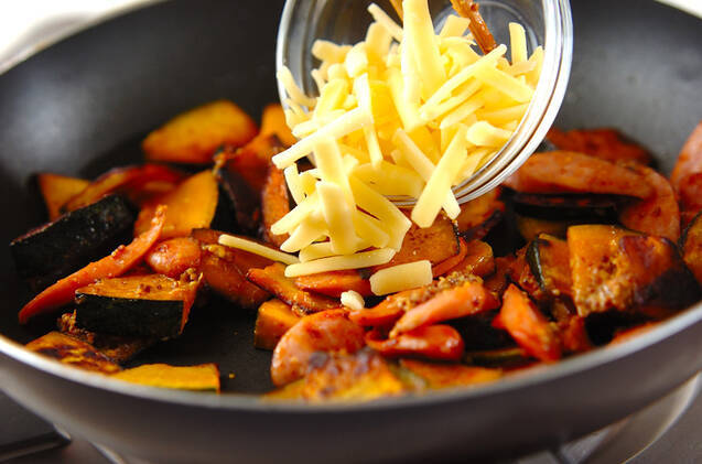 ピザ用チーズを加えてサッと炒め合わせ、塩コショウで味を調えて器に盛る。