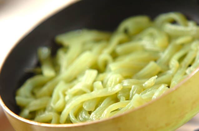 フライパンにサラダコンニャクを入れ、空炒りして水分が飛んだら1の<梅肉ダレ>に合わせて、器に盛る。