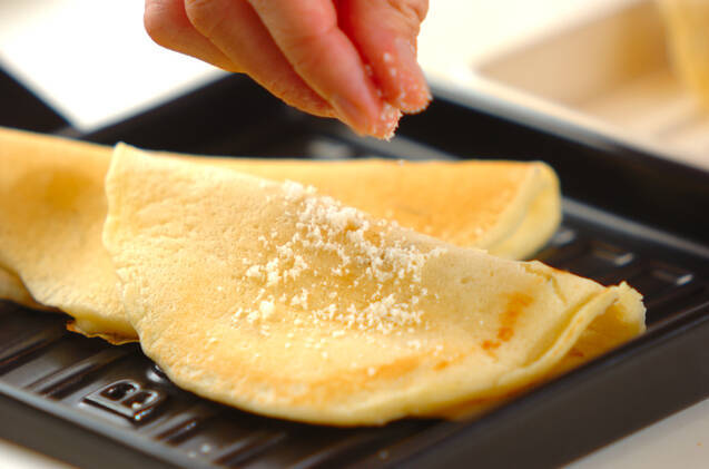 焼けたら皿に盛り、粉チーズを振って仕上げる。