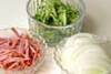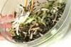 芽ひじきはタップリの水で柔らかく戻し、ザルに上げしっかり水気を切る。