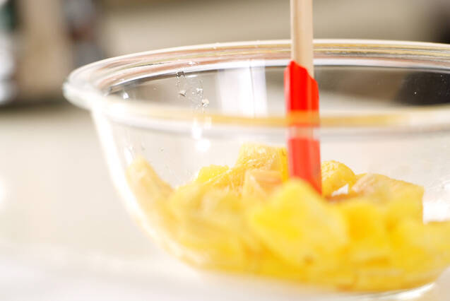 ホワイトキュラソーを全体にからめて、冷凍保存袋に入れ冷凍庫で凍らせる。グレープフルーツは皮をむいて、果肉だけを取り出す。