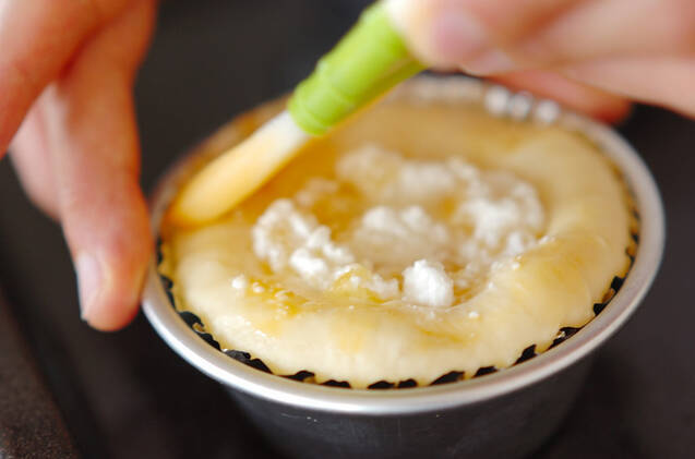 生地の縁に溶き卵をぬり、170~180℃に予熱しておいたオーブンで10~12分焼く。
